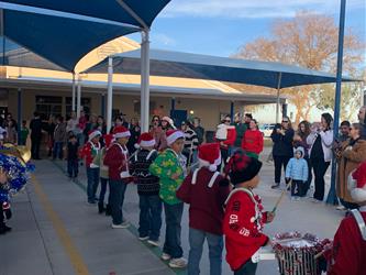 Spartan Drum Line visits McCabe for CAASPP kick-off assemblies.